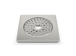 200 X 200 X 7 mm. Rostfri klinkerram med 1,25 mm tjock rostfri rund sil med urtag. För klinkergolv. Passar alla 150-brunnar. Tål belastning 150 Kp.